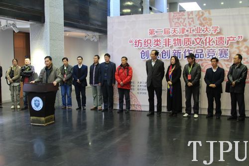 2013年11月10日,我校第二届“纺织类非物质文化遗产”创意创新作品竞赛在我校艺术与服装学院一楼大厅隆重举行。我校教务处处长武宝林,艺术与服装学院院长李晓久、党委书记霍桂立、副院长解基程,经济学院副院长曹明福,计算机学院副院长徐国伟,花艺文化实业有限公司董事长、英国Artzip杂志出版人、我校艺术与服装学院客座教授刘春芬女士及各学院的专家评委、指导教师与参赛学生出席了开幕仪式。霍桂立书记代表竞赛承办方为大会致开幕词,武宝林处长代表竞赛主办方讲话并宣布比赛开始。开幕式由工程训练中心副主任、教务处副处长王文涛主持。