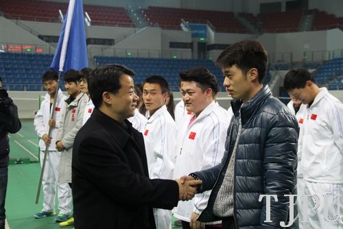 2014221日下午,共青团中央书记处书记傅振邦一行莅临我校, 对“走下网络、走出宿舍、走向操场”主题群众性课外体育锻炼活动等共青团工作进行调研指导。共青团天津市委书记刘志强、副书记刘亚男、学校部部长时胜强陪同调研。我校党委书记张宏伟、校党委副书记杨吉棣会见了傅振邦一行,并陪同前往我校大学生创业园、体育馆进行参观调研。