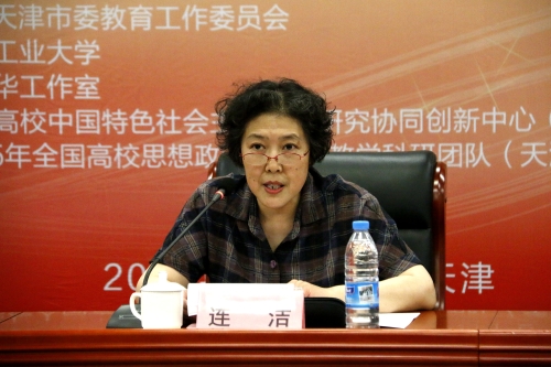 连洁书记致开幕词。她表示,工作室以立德树人为宗旨,坚持教研学训协同共建、骨干教师协同共生、学生分层协同共育、经验成果协同共享的发展理念,旨在聚合我校《马克思主义基本原理概论》课程已有经验成果,将现代教育技术和传统教育模式相结合,增强课程感染力;将教师课堂教学和学生课后学习相结合,提升教学引导力;将教师教学模式和学生行为规范相结合,突出学习实用性;将理工学生兴趣偏好和考核体系结合,凸显考核综合性;将骨干师生培养和教研经验推广结合,彰显工作室辐射性。工作室正朝着将工作室建成为立足天津,辐射京津冀乃至全国的名师工作室的方向迈进。