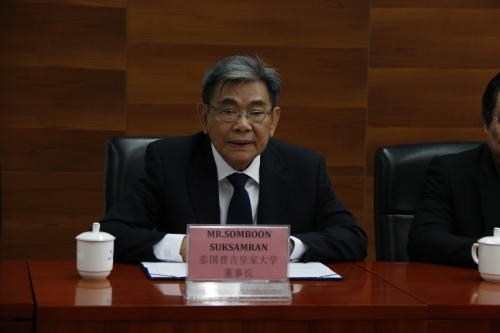 皇家大学SOMBOON SUKSAMRAN董事长首先衷心感谢我校对其代表团的热情接待,并希望两校教师可以借助合作平台开展学术交流,共话教育发展,共求进一步推进教育之道;两校学生更可以借助交换生项目,开拓视野,了解彼此文化,促进两国友谊。