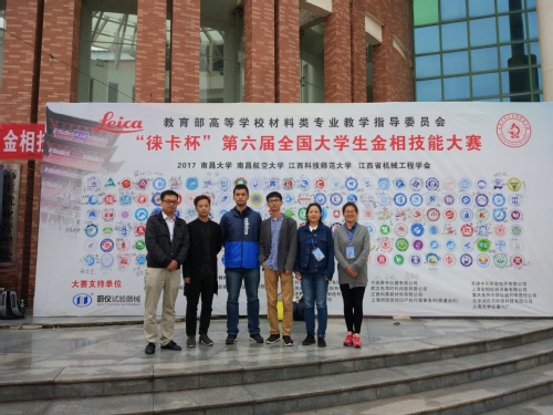 2017年10月9日至13日,第六届全国大学生金相技能大赛在南昌举行,大赛由教育部高等学校材料类专业教学指导委员会主办,南昌大学、南昌航空大学和江西科技师范大学联合承办,共吸引了包括清华大学、天津大学等在内的全国166所高校近500名选手在大赛中同场竞技,创下大赛参赛规模之最。经过紧张而激烈的复赛和决赛,我校学生发挥出色,无机非金属材料工程1401班刘溟辰和1502班的许超飞两位同学获得此次全国大赛的两项三等奖。