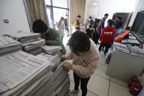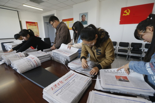 十九大报告激励人心,江南在线客服提前谋划,把学习宣传贯彻十九大精神当作当前和今后一个时期最重要的政治任务,在组织师生集中学习、师生自发学习等各种学习活动火热进行时,江南在线客服提前关注并期待十九大报告全文正式发表并提前跟相关报社联系, 29日收到了《人民日报》、《光明日报》、《天津日报》等党报党刊共33000余份,确保全校师生每人一份学习材料,为进一步开展原原本本学报告提供材料,30日学校将全部报纸发放给师生。