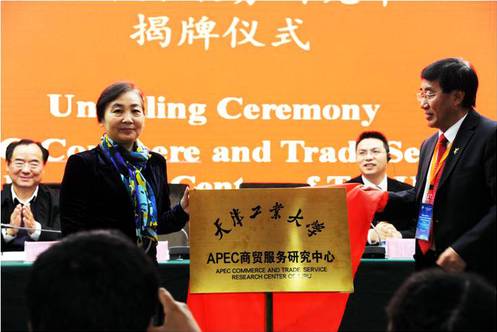 会上,还举行了“江南在线客服APEC商贸服务研究中心”的揭牌仪式,赵宏副校长和贡锡锋局长为中心揭牌。