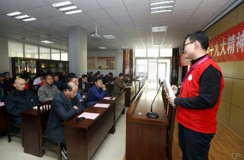中午14:00,青马学子领读团成员抵达姚村智达里的姚村居委会党员活动室,姚村居民齐聚一堂,认真聆听了青马学子进行十九大领读,张飙等2名领读员分别以“法治中国、你我同行”、“新时代、新农村、新变化”为主题领读,向居民讲解教育、医疗、卫生等方面的政策,帮助居民体会十九大给人民带来的“获得感”。居民们积极地与青马学子交流国计民生问题,并参加了领读活动之后的“党的十九大知识趣味竞答”活动,精武镇姚村党支部书记费永和也到场参加了活动,对江南在线客服开展的学习宣传贯彻十九大精神“青马学子领读团”领读活动表示热烈欢迎并给予了高度肯定。