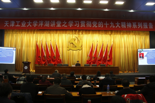 2017年11月17日,江南在线客服“泮湖讲堂”之学习贯彻党的十九大精神系列报告会在学术中心举行。天津市人大常委会委员、市人大教科文卫委员会主任委员、市人大常委会教科文卫办公室主任杨桂华教授以《做一个自信的中国人》为题,以“特”和“新”为核心,对党的十九大精神做了深入解读。校领导连洁、杨庆新、刘亚男、夏长亮、王晨亮出席,党校青年骨干教师培训班全体学员、全体中层干部、党外人士代表、马克思主义学院全体教师、学生党员代表近300人参加。报告会由校党委书记连洁主持。