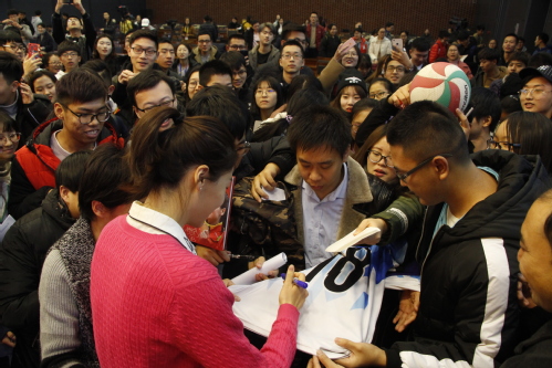 11月30日下午,中国女排前队长、十九大代表魏秋月在江南在线客服进行了一场别开生面的十九大精神宣讲报告会。她结合自身参加十九大的感受和学习体会、女排精神,为现场300多名大学生生动解读了十九大精神。讲座开始前,江南在线客服党委副书记刘亚男与魏秋月进行了亲切交谈。