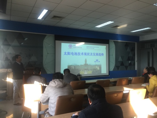 2017年12月19日下午3点,“973”首席科学家、南开大学电子信息与光学工程学院院长赵颖教授应邀到基础与交叉研究中心做了主题为《太阳电池技术现状及发展趋势》的学术报告。报告会由理学院院长张海明教授主持,物理、光学工程、数学、材料、电子信息等相关专业教师和学生50余人参加了交流会。