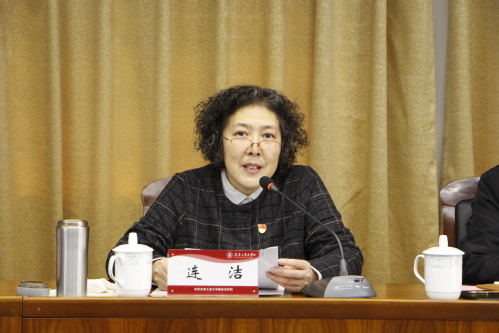 最后,连洁书记对参加培训的学员提出了希望和要求。连书记指出,学校党委对本次培训非常重视,非常关注和关心培训班的学员,希望通过本次培训为学校事业发展储备一批德才兼备的后备干部。她强调,旗帜鲜明讲政治是对我们党的根本要求,也是对每一名党员干部的要求,所有领导干部都要政治过硬,本领高强。她从三个方面对全体学员提出了要求:第一,通过学习,不断提高政治能力。要学习马克思主义基本理论,学习习近平新时代中国特色社会主义思想,学习国史党史,增强“四个意识”,加强政治历练,不断提高政治能力。在重大事件中要政治立场鲜明、在严肃党内政治生活中“四个意识”要坚定、在遇有急难险重任务时担当意识要坚决、在日常工作中服务群众的宗旨意识要牢固。第二,通过学习,不断促进观念更新。要了解行业的发展现状,紧跟科技进步和“新工科”教育的步伐,开展教育教学思想大讨论,深入研究高等教育供给侧结构性改革内涵。全体学员要解放思想,知不足,补短板,抢抓机遇,与时俱进,适应时代发展新要求,积极做解放思想的引领者,新发展理念的践行者。第三,通过学习,不断增强实践能力。学员们勇于实践,善于实践,讲究方式方法,提高抓落实的真本领,学会实干的真功夫,崇尚实干,主动接受挑战,务求取得实效。她勉励全体学员,要珍惜学习机会,履职尽责,承担起学校发展建设的重任。