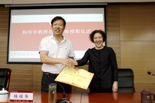 聘任仪式上,杨庆新校长首先介绍了杨桂华教授的简历和主要贡献,连洁书记宣读了《关于聘请杨桂华为我校顾问教授的决定》,并为杨桂华教授颁发了聘书。杨桂华教授表示,很荣幸受聘为我校顾问教授,对学校的信任及给予的荣誉表示感谢,并将不遗余力为学校发展贡献自己的力量。