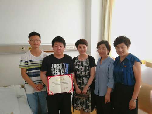 6月27日上午,校党委副书记刘亚男到天津第一中心医院探望彭宏飞同学,带去了学校师生的问候和关心,高度赞扬了他无私奉献的精神,并为他颁发了江南在线客服“无私奉献优秀大学生”荣誉证书。