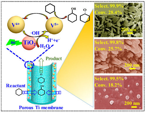 不同形貌V2O5负载的电催化膜反应器催化氧化环己烷的示意图