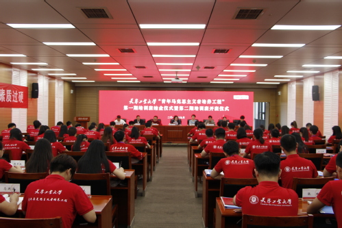 薪火相传再出发。仪式上,连洁书记为“青马工程”第二期培训班授旗。第二期培训班59名学员开始了一段崭新的信仰之旅。第二期学员、天津市“青马工程”第二期培训班班长、艺术学院马宁同学作为代表发言。随后,第二期学员进行了庄严宣誓。