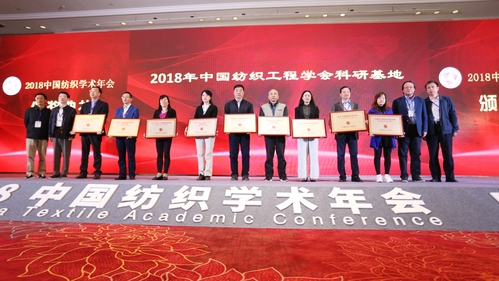 学术年会期间颁发了系列奖项,我校纺织学院康为民教授荣获2018纺织青年科技奖。由我校张健飞教授指导的、刘菲等人撰写的《层层自组装多糖微胶囊制备及其在纯棉织物上的应用》,陈利教授指导的、王心淼等人撰写的《多层多向机织复合材料细观结构建模及其性能》获得第19届陈维稷优秀论文奖。此外,大会还向包括我校在内的9所2018中国纺织工程学会科研基地授牌,并举行了海峡两岸纺织服装产学研联合体成立仪式。