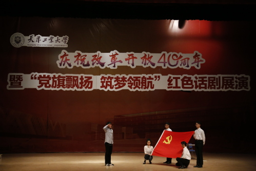 12月6日,我校庆祝改革开放四十周年暨“党旗飘扬 筑梦领航”红色话剧展演在艺缘礼堂举行。天津音乐学院及我校党委组织部、党委宣传部、工会、机关分党委相关老师担任展演评委,师生近800人观看了展演。本次活动由党委组织部和党委学生工作部主办。