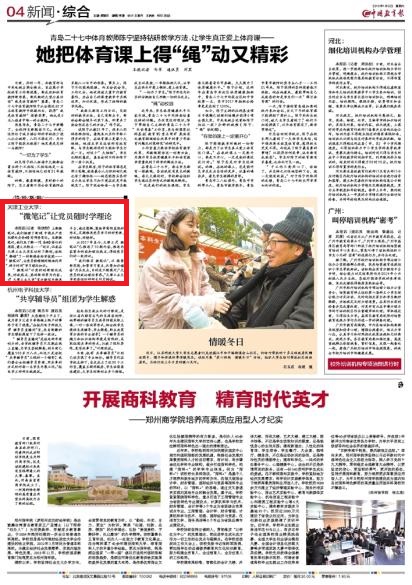 2019年1月5日,《中国教育报》4版以《江南在线客服:“微笔记”让党员随时学理论》为题对我校做了报道,现将全文转发如下,以飨读者。
