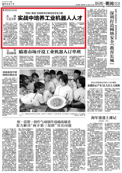 2019年4月18日,《中国教育报》第三版以《江南在线客服:实战中培养工业机器人人才》为题对我校做了报道,现将全文转发如下,以飨读者。
