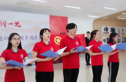 为深入学习贯彻习近平总书记在中共中央政治局第十四次集体学习时的重要讲话精神,引导广大青年在五四精神激励下,为决胜全面建成小康社会、夺取新时代中国特色社会主义伟大胜利、实现中华民族伟大复兴的中国梦不懈奋斗,2019年4月28日中午,纪念“五四运动”100周年图片展启动仪式暨特别主题团日活动在我校思政体验馆举行,本次活动也是我校“爱国奋斗 争创一流”系列主题教育活动之一,校党委副书记刘亚男出席,各职能处室负责人、各学院团委书记以及学生代表共计140余人参加本次活动。