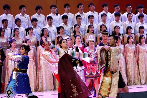 此外,天津校友代表、学工部的少数民族预科班、艺缘合唱团分别为广大师生们带来了特别的助演节目《夜空中最亮的星》《我和我的祖国》《绒花》《我在飞翔》《在灿烂阳光下》。磅礴的气势,动人的旋律,深情的演唱,获得了大家的肯定。