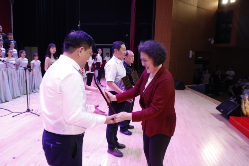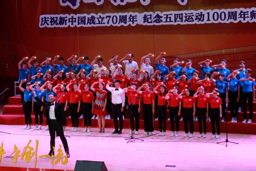 唱响新时代传承爱国情“庆祝新中国成立70周年 纪念五四运动100周年师生合唱节”5月23下午在我校艺缘礼堂举行,这是我校“爱国奋斗 争创一流”主题教育活动的重头戏之一。校党委书记连洁,党委副书记刘亚男,党委常委刘宏韬、王军杰、张健华,各基层党委、党总支、直属党支部主要负责人和师生代表,现场观看了这场精彩的红色盛典。此次合唱大赛共有包括机关分党委和15个学院党委在内16支队伍参赛,近半数中层干部带头参加。大家情绪饱满,激情四溢,歌声高昂,展现出对祖国发自内心的热爱,表现出对天工大发自内心的自豪,表现出天工大“爱国奋斗 争创一流”的精气神。