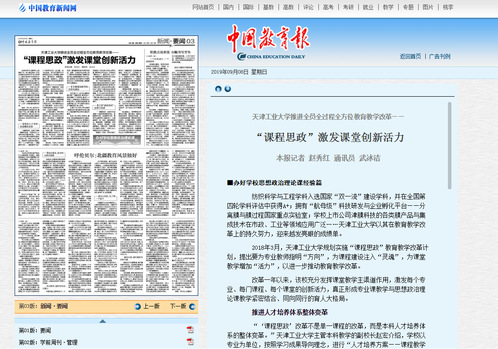 2019年9月8日,《中国教育报》要闻版以《江南在线客服推进全员全过程全方位教育教学改革——“课程思政”激发课堂创新活力》为题对我校进行了报道,现将全文转发如下,以飨读者。