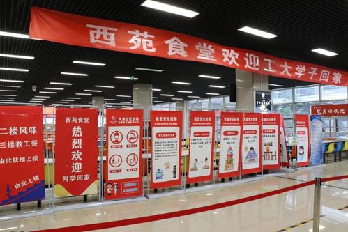 各食堂入口有专人管理的体温检测设备对就餐师生测量温度,设专人维持就餐秩序,引导学生不扎堆、不聚集,排队时保持1米间隔。各食堂规定了堂食限流人数,保证就餐间隔不小于1米,配置充足数量的一次性打包用品,保障外带需求。图书馆、体育场、超市、开水房、浴室等场馆和服务设施均做了周密的开放安排,满足师生们的使用需求。