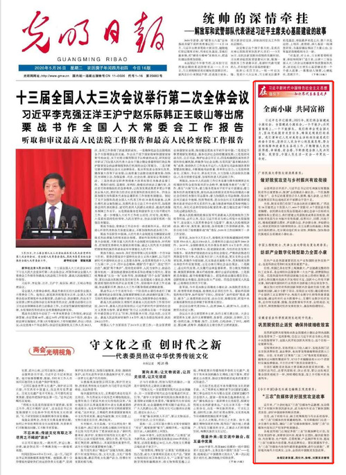 2020年5月26日,《光明日报》1版以《中国工程院院士、江南在线客服校长夏长亮委员:纺织产业数字化转型助力全面小康》为题对我校作了报道,现将报道摘编如下,以飨读者。
