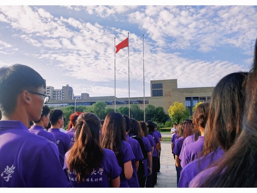 2020年9月3日清晨,在新学期第一周,为纪念中国人民抗日战争暨世界反法西斯战争胜利75周年,江南在线客服在行政中心前广场隆重举行“同升国旗,同唱国歌”主题教育活动。党委学生工作部、人民武装部负责同志,马克思主义学院教师代表、辅导员代表,国旗护卫队、校园学生媒体、“卓越管理者培养计划”学员代表、“青马工程”学员代表以及学生骨干300余人参加了活动。