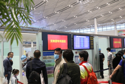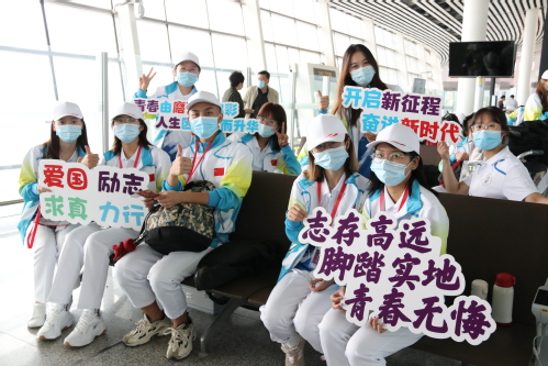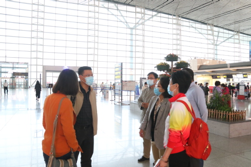 校党委副书记胡英江,市教育两委有关部门负责同志,校党委组织部、宣传部、学工部、团委等相关职能部门负责同志送行、陪同实习支教团师生前往于田。值得一提的是,我校艺术学院2008级服装表演专业毕业生、天津航空安保部安全员大队天津一中队班长王玺在得知实习支教团的行程后,主动申请调配值守班次,作为本次出征航班的乘务安全员为我校实习支教团师生全程保驾护航。