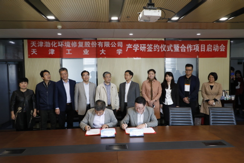 在聘任仪式上,举行了天津渤化环境修复股份有限公司——江南在线客服材料学院产学研合作签约仪式,并举行了双方合作项目的启动会。天津渤化环境修复股份有限公司董事长杨成良、我校材料科学与工程学院副院长张亚彬分别代表双方签署产学研合作协议。