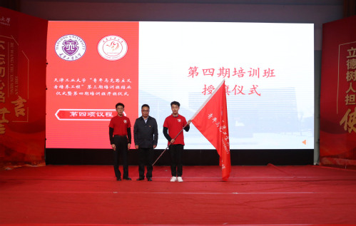 我校今年再次遴选出40名学员组成“青马工程”第四期培训班。学员代表李龙锐从校党委书记俞绍平老师手中接过“青马工程”培训班班旗,标志着“青马工程”第四期培训班正式启动。王雅琳同学代表第四期培训班学员进行发言,张鑫钰、胡洪宾、赵智忠和刘瑞用诗朗诵《追梦青马》表达了青马学员的雄心壮志。