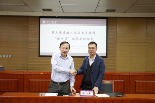 随后,10名青年教师代表与高端人才合作导师签订“结对子”协议,新老教师传帮带,薪火相传共成长,结成帮长结合、共同发展的“对子”。