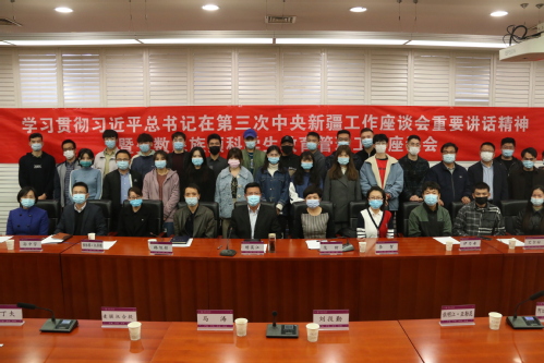 2020年11月9日上午,我校“学习贯彻习近平总书记在第三次中央新疆工作座谈会重要讲话精神暨少数民族预科学生教育管理工作座谈会”在会议中心召开。校党委副书记胡英江出席,学校相关部门负责同志及教师、少数民族学生代表40余人参会。会议由党委学工部部长范甜主持。