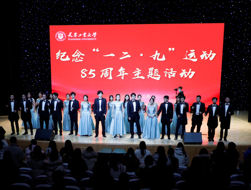 情景诗朗诵《我们的青年时代》和歌曲《毕业歌》《长城谣》让师生一起重温85年前国家陷入危难之际,爱国青年们发出的时代声音。正是这样的热血青年们的披荆斩棘、奋斗牺牲,中华民族才得以从危难中奋起、重生。节目更让大家懂得:中国共产党从诞生之日起,就是同青年学生、知识分子结合在一起的。同样,青年学生、知识分子也只有跟中国共产党在一起,才能走上正确的道路。