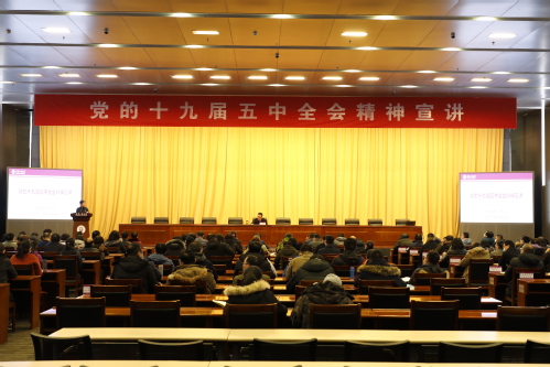 宣讲会上,俞书记聚焦党的十九届五中全会,紧扣全会审议通过的《中共中央关于制定国民经济和社会发展第十四个五年规划和二〇三五年远景目标的建议》,紧密结合学校人才培养、教育教学、科技创新、就业、安全稳定等重点工作,从“深刻认识我国进入新发展阶段的重大意义、有利条件和重要特征”、“准确把握2035年远景目标和‘十四五’时期我国发展的指导方针、主要目标、重点任务”、“牢牢把握构建新发展格局的战略构想和重要着力点”、“坚持党的全面领导,动员各方面力量为实现‘十四五’规划和2035年远景目标而团结奋斗”四个方面,对党的十九届五中全会精神进行了系统阐释和深入解读。整场宣讲主题鲜明、内容丰富、指导性强,对于广大党员干部和师生深刻领会、贯彻落实全会精神,切实做好本职工作具有重要作用。