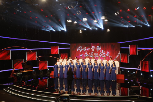 “万水千山不忘来时路,鲜血浇灌出花开的国度,生死相依只为了那一句承诺,报答你是我唯一的倾诉……不忘初心,继续前进,万水千山,最美中国道路。”35名合唱团成员以一首《不忘初心》,带领我们重温革命先烈用生命和热血铸就的雄壮历史,展望未来中国的美好前景,阔步迈向新征程。录制现场,大家难以掩饰心潮澎湃的激动心情,他们表示:“此次展演正逢中国共产党成立100周年,我们要用歌声激发全校师生的向心力和凝聚力,增强全校师生不忘初心、牢记使命争创具有世界一流学科的高水平大学的自信心和自豪感。”在现场,他们以嘹亮的口号“牢记初心担使命,孜孜不倦育新人;天工开物织锦秀,桃李芬芳自成蹊”喊出了天工人的责任与担当。