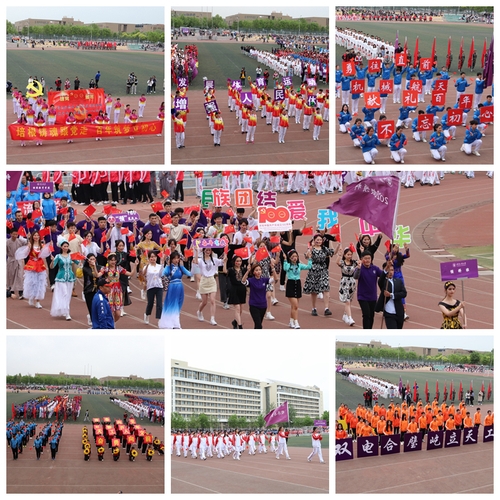 伴随着《运动员进行曲》的激昂旋律,32个方队喊着响亮的口号,迈着坚定的步伐依次进入运动场、走过主席台,充分展现了我校师生良好的精神风貌。