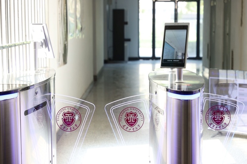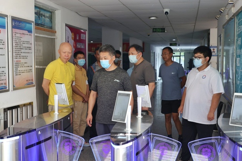 张玉波副校长详细了解了一卡通升级项目的整体安排和施工进度,先后实地查看了食堂聚合收款的新POS机安装进度和宿舍人脸识别通道的施工情况,对一卡通升级项目的进展情况表示肯定。
