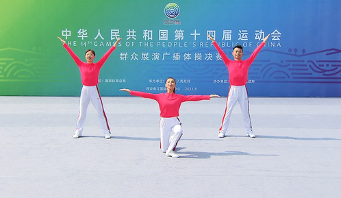 第十四届全运会群众赛事活动展演项目为全运会首次设立,共有广场舞、广播体操、健身气功和太极拳4个大项、43个小项,均采用线上参赛、线下评审方式举行,本届群众赛事活动展演项目吸引了全国各地的766支队伍、6800多人参赛。其中广播体操设个人赛、三人赛、团体赛三个分项,线下参赛队伍242支、运动员1318名。
