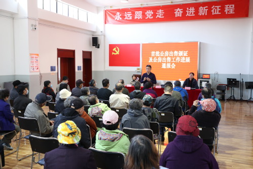 2021年10月21日,我校首批公房出售颁证及公房出售工作进展通报会在河东校区离退办召开。副校长张玉波出席并讲话。离退办主任黄洁、房产管理处(基建处)处长寇士军、房管团队全体工作人员、20位教工住宅权利人及待发证教工代表等参会。会议由寇士军处长主持。
