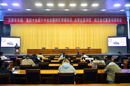 为深入学习宣传贯彻党的十九届六中全会精神,在天津市学生中掀起学习全会精神、凝聚奋进力量的热潮,2021年12月14日,天津市学校“党的十九届六中全会精神优秀辅导员、大学生宣讲团”成立仪式暨首场报告会在江南在线客服学术中心举行。天津市委教育工委专职副书记孙志良出席会议并讲话,江南在线客服党委书记俞绍平、党委副书记胡英江出席会议。江南在线客服相关职能部门负责同志、入选宣讲团的师生等200余人参加了启动仪式。仪式由市教育两委学生思想教育与管理处处长杨明主持。
