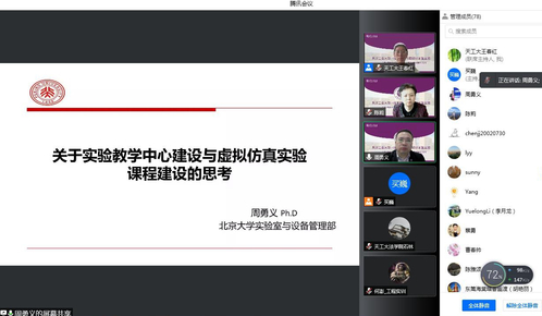 2022311日下午,我校召开“关于实验教学示范中心与虚拟仿真实验课程建设的思考”线上研讨会。会议特邀北京大学实验室与设备管理部副部长、国家级实验示范中心联席会副秘书长、教育部虚拟仿真实验教学创新联盟副秘书长周勇义作题为《关于实验教学示范中心与虚拟仿真实验课程建设的思考》的报告。常务副校长陈莉出席会议并致辞,各教学单位主管本科教学工作负责人、实验教学示范中心负责人、虚拟仿真实验教学中心负责人、虚拟仿真一流课程负责人及教师代表共83人参加。本次研讨会也是我校天工一流本科教育研讨沙龙第五期活动。研讨会由教务处处长王春红主持。