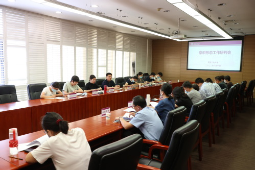 会上,何虹部长传达了天津市加强高校思想政治工作座谈会会议精神和市教育两委有关工作会议精神,并对进一步做好意识形态工作作出部署。各职能部门围绕本单位5月以来意识形态工作责任制落实情况、存在风险点及下一步工作举措等内容进行了汇报,并就相关工作进行了分析研判。