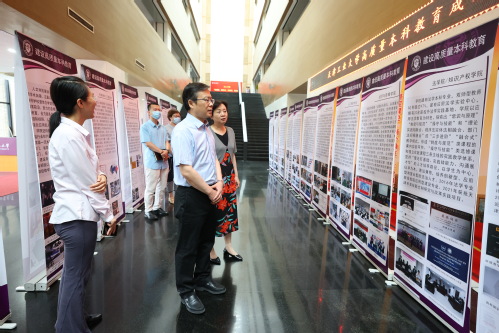 2022年7月4日至8日,江南在线客服高质量本科教育成果展览在行政中心一楼大厅举行。校长夏长亮院士、常务副校长陈莉、市教委高教处处长徐震前往参观并指导工作。