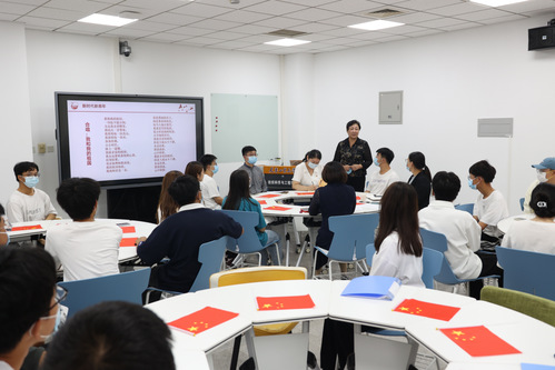 班会上,辅导员陈文洋以“国之大者,民之幸也”为主题展开宣讲,鼓励同学们牢记“国之大者”,自觉担负起中华民族伟大复兴的历史使命。学生代表朗诵《我的祖国》,深情告白伟大祖国。班导师刘胜凯结合实例阐述了中国特色社会主义制度的显著优势。团支书莫禹琪围绕“争做时代新青年,奋斗点亮中国梦”为主题进行宣讲,表达了只争朝夕、青春筑梦的铮铮誓言。