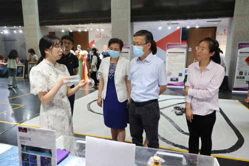 中国纺织服装教育学会会长倪阳生充分肯定了我校本科毕业设计(论文)工作。他指出,本次“新四科”本科毕业设计(论文)项目成果展搭建了师生跨学科融合学习和实践的空间,是学校人才培养新模式改革创新的生动体现,必将推动本科教育教学水平再上新台阶。