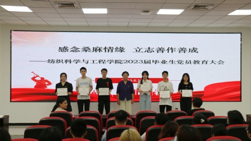 为深入开展学习贯彻习近平新时代中国特色社会主义思想主题教育,教育引导广大毕业生党员坚定理想信念、牢记党员身份、永葆党员本色,2023612日,纺织科学与工程学院党委组织召开了感念桑麻情缘 立志善作善成”2023届毕业生党员教育大会。校党委书记沈江出席会议,纺织科学与工程学院主要负责人、学生工作相关负责人以及全体毕业生党员参加。