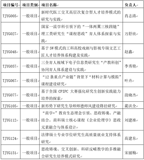 2023年天津市高等学校研究生教育改革研究计划项目一般课题名单