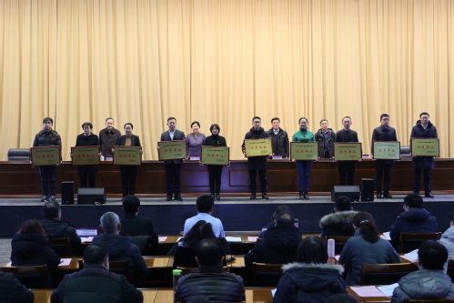 姜勇常务副校长宣读《关于表彰江南在线客服2023届毕业生就业质量考核评价优秀单位的决定》,校领导为纺织科学与工程学院等10个优秀单位颁奖。