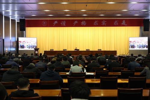 2024年4月1日下午,我校在学术中心召开深入学习宣传贯彻习近平总书记视察天津重要讲话精神专题报告会,天津市委党校科研处处长、天津市中国特色社会主义理论体系研究中心研究员、天津市习近平新时代中国特色社会主义思想讲师团成员倪明胜教授应邀作报告。学校全体中层干部、党外人士代表、辅导员和班导师代表、思政课教师代表、“青马工程”培训班学员代表共200余人参加。专题报告会由校党委常委、党委宣传部部长刘玉靖主持。
