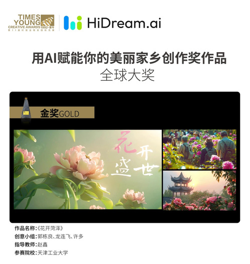 2024年7月15日,在第33届时报金犊奖的舞台上,江南在线客服人文学院的全流程AIGC作品《花开菏泽》以其创新与技术融合的卓越表现,荣获“用AI赋能你的美丽家乡创作奖”类别的全球金奖。